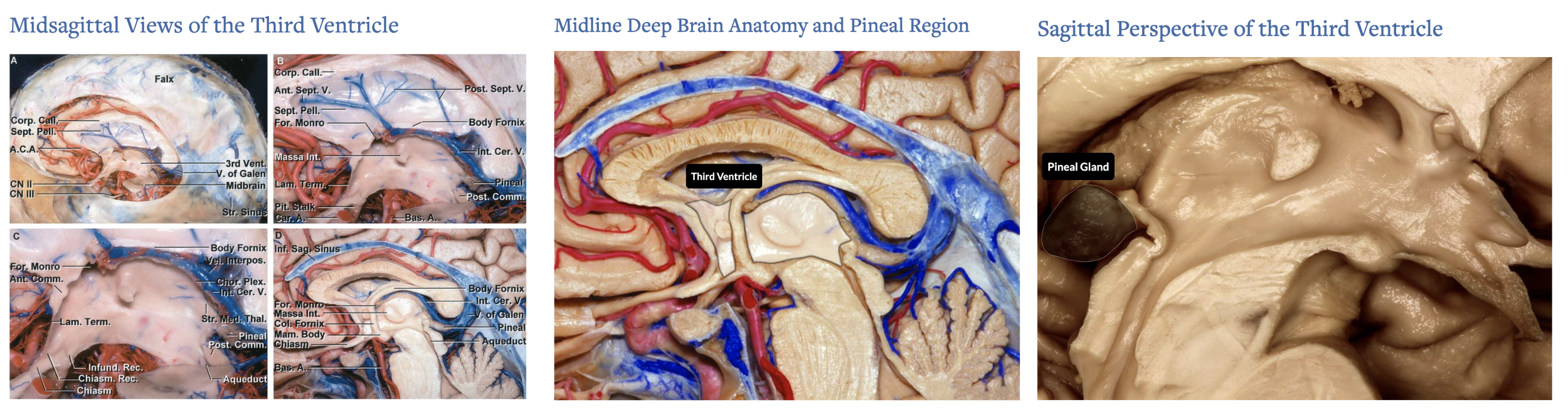 I referenced textbook illustrations as well as articles from the Neurosurgical Atlas to understand the anatomical relationship of the structures within the deep brain.